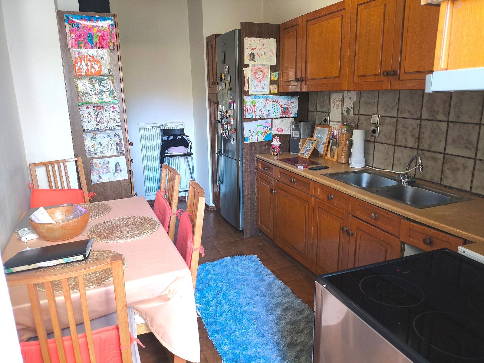 - Кухня захламлена детскими рисунками и личными вещами