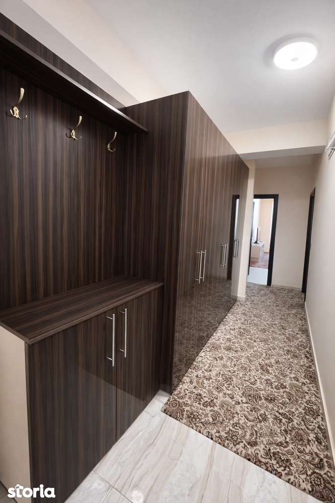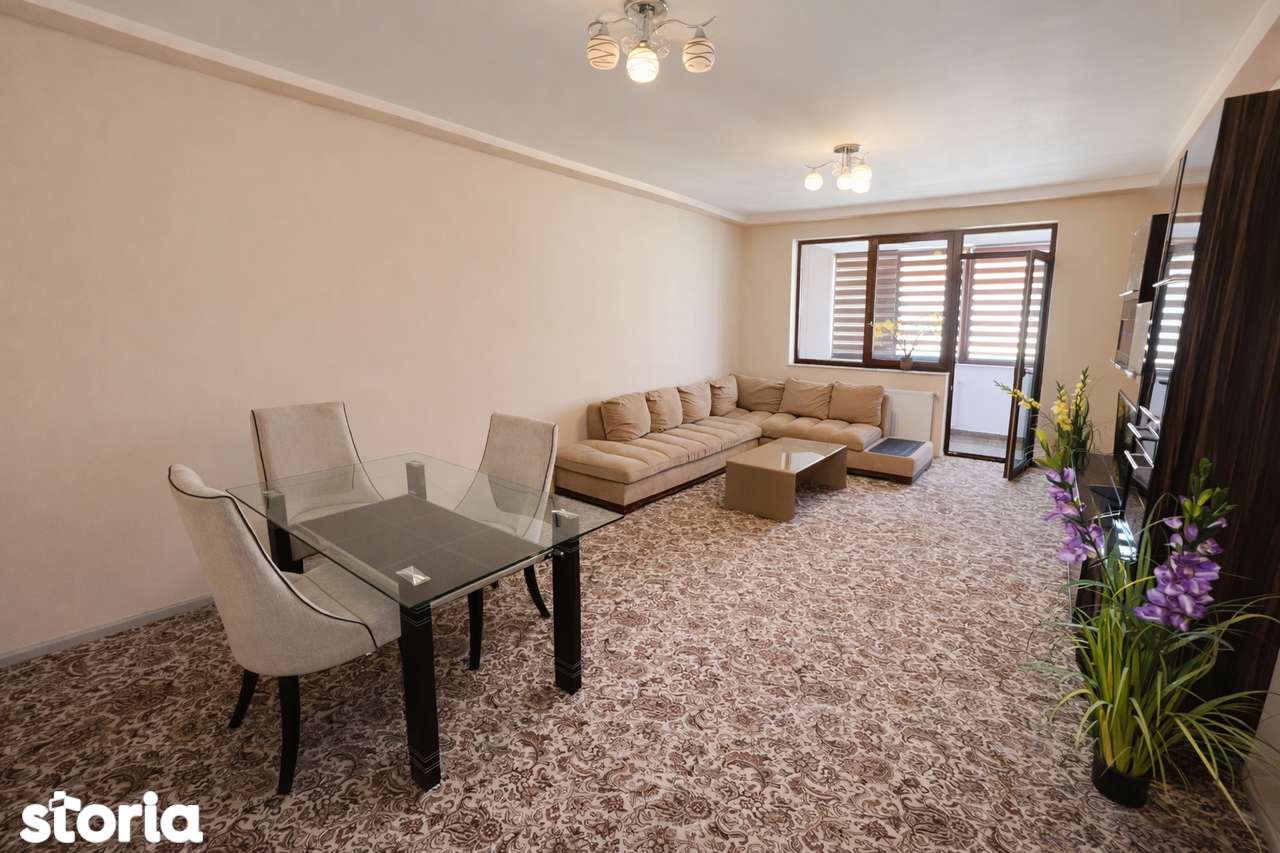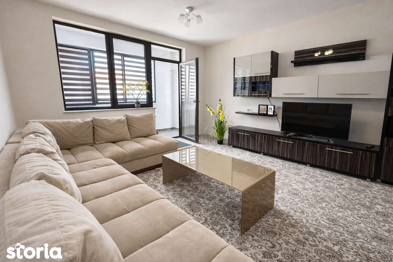 Квартира расположена в жилом комплексе Isaran, в 2 минутах ходьбы от торгового центра Coresi Shopping Resort и рядом с магазином Lidl. Находится в первом доме от главной улицы 13 Decembrie с двумя автобусными остановками прямо перед зданием. Двухкомнатная квартира продаётся полностью меблирована и оборудована, под ключ. Полезная площадь — 81 м² (включая террасу), в комплекте подземное парковочное место. Планировка: - Гостиная 30,58 м² — меблирована, с прямым доступом на террасу - Спальня 20,55 м² — полностью меблирована, с гардеробом и зоной отдыха - Отдельная кухня 9,84 м² — меблирована и оборудована - Ванная 5,75 м² — полностью функциональна - Прихожая 8,86 м² — организована с местами для хранения - Закрытый и отапливаемый балкон 5,20 м² — идеален для офиса Оснащение включает: в гостиной — стол со стульями, телевизор, угловой диван, светодиодное освещение; кухня оборудована посудомоечной машиной, холодильником, газовой плитой, вытяжкой, микроволновкой и духовкой; спальня имеет кровать king-size (200x200 см) с ортопедическим матрасом, жалюзи, телевизор и две кресла; в ванной — ванна, биде, фен, зеркало с подсветкой. Премиум-локация: первый дом от улицы 13 Decembrie, 2 минуты до торгового центра Coresi, две автобусные остановки у дома, рядом новый магазин Lidl и другие магазины. В близкой доступности школы, детские сады, парк, супермаркеты и фитнес-центры. Цена: 159 000 EURO (включает НДС и 1 подземное парковочное место). Быстрый переезд! Без комиссий / не агентство. Возможна ипотека.