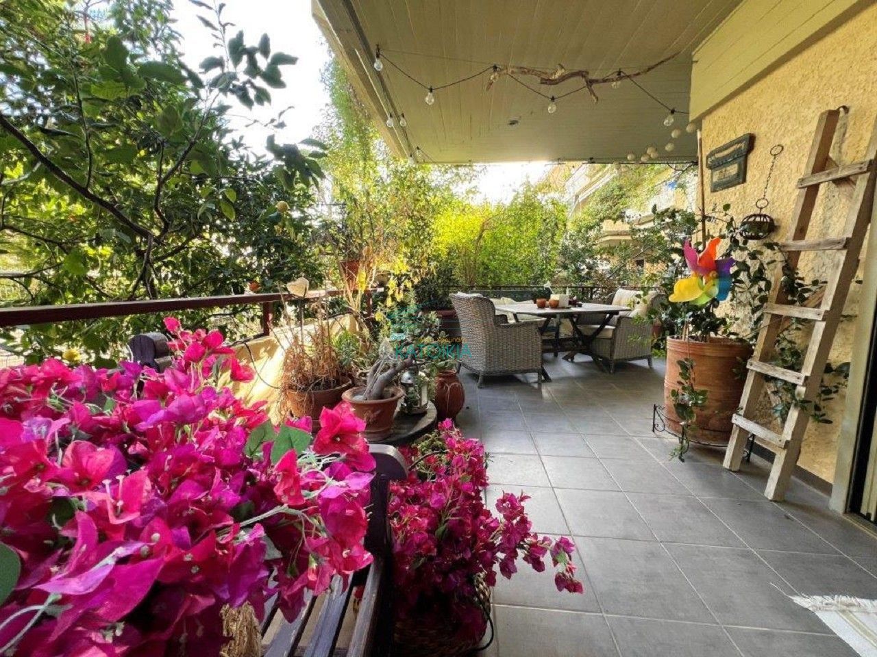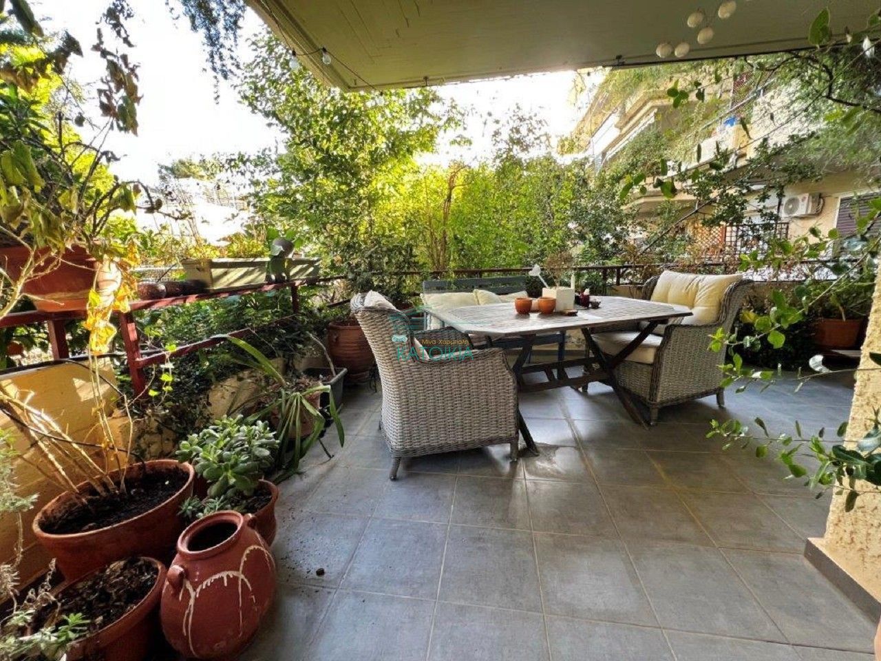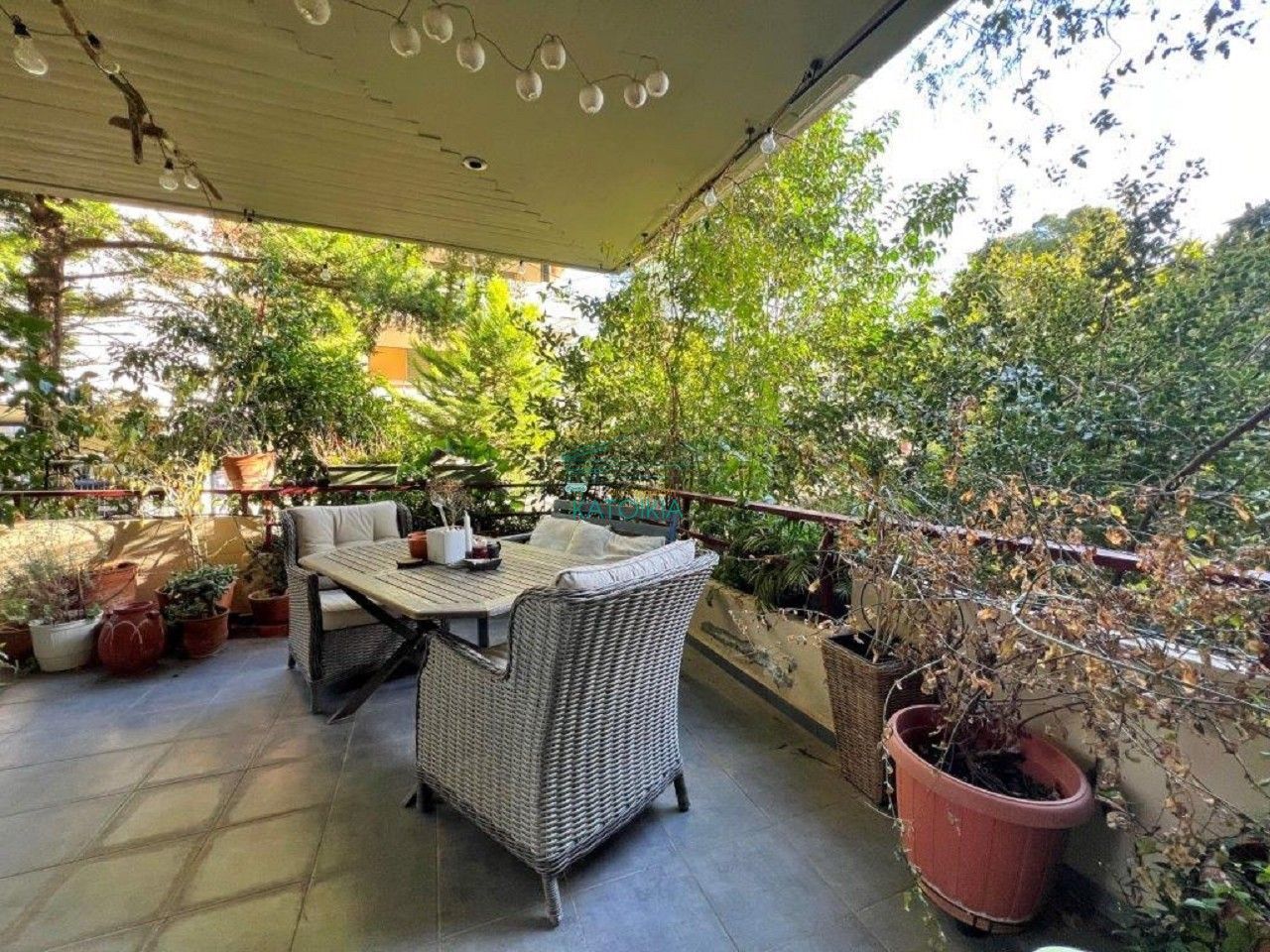 - Видны увядшие растения в горшках, требуется уход за озеленением