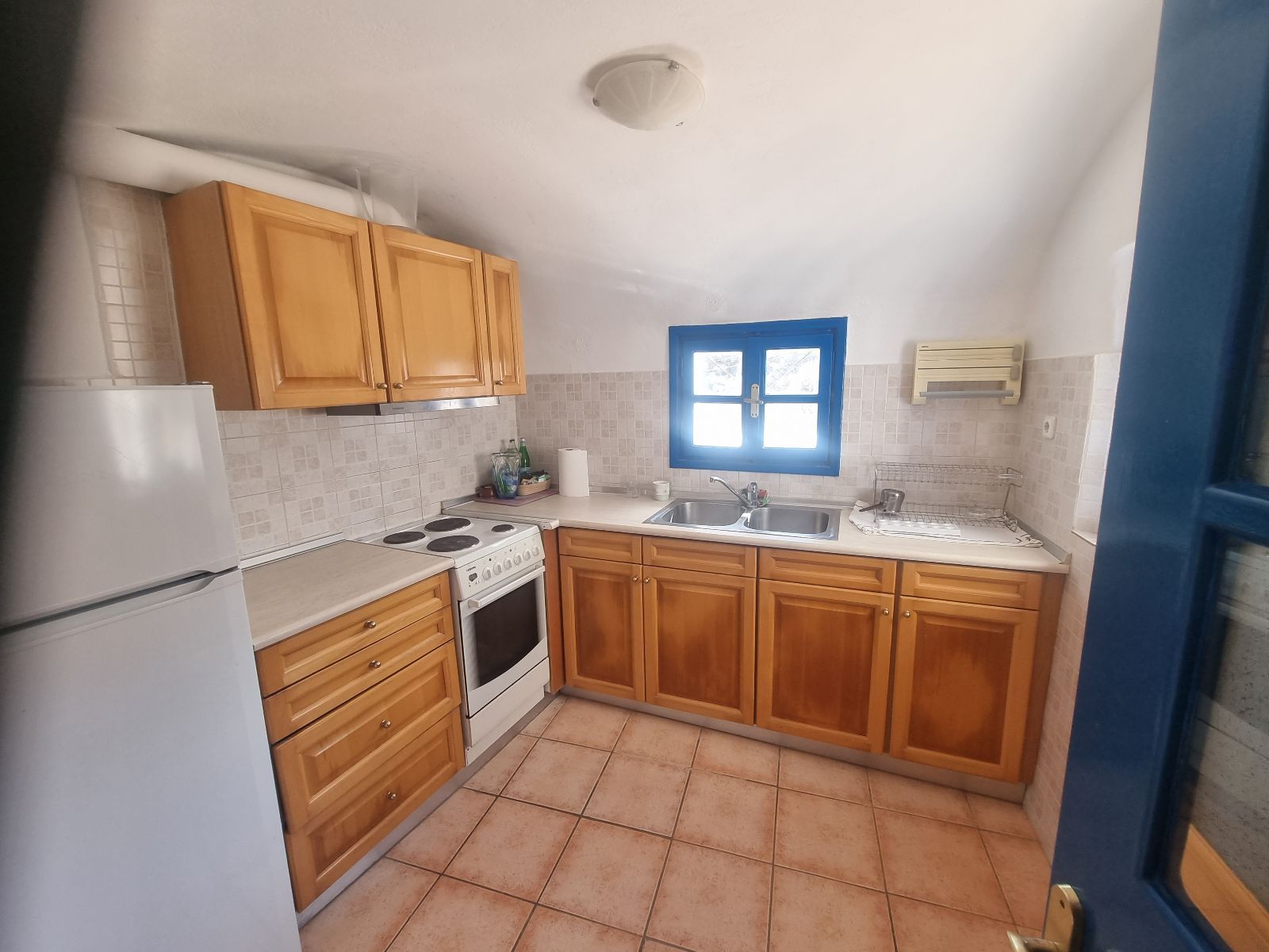 - Видны потертости и загрязнения на плитке, стенах и столешнице
