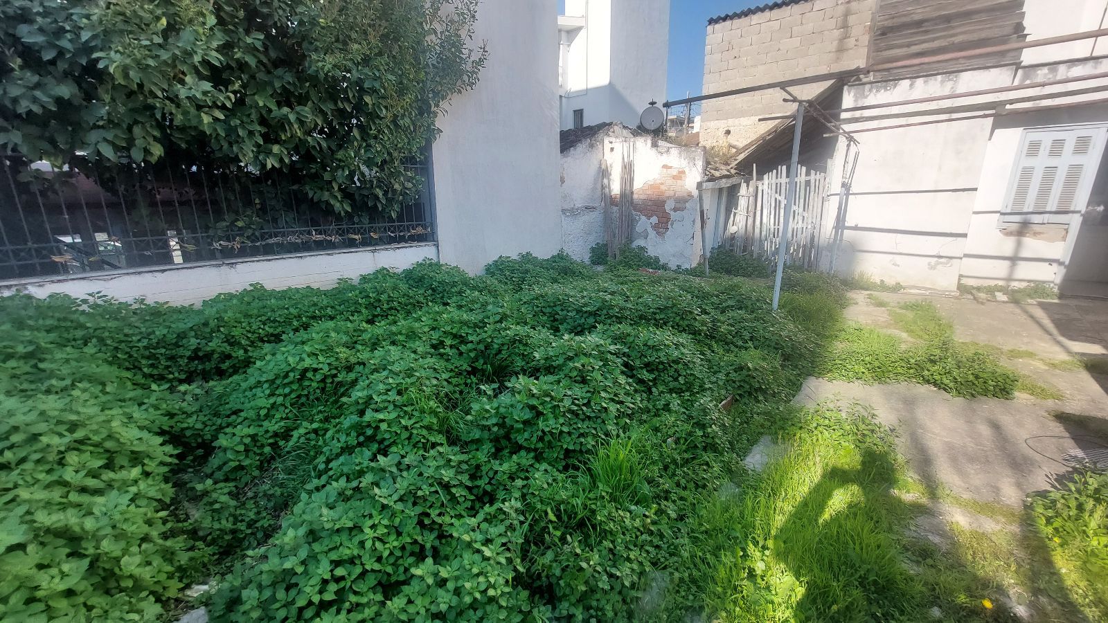 - Запущенный двор, заросший сорняками и травой, отсутствие ухода за территорией