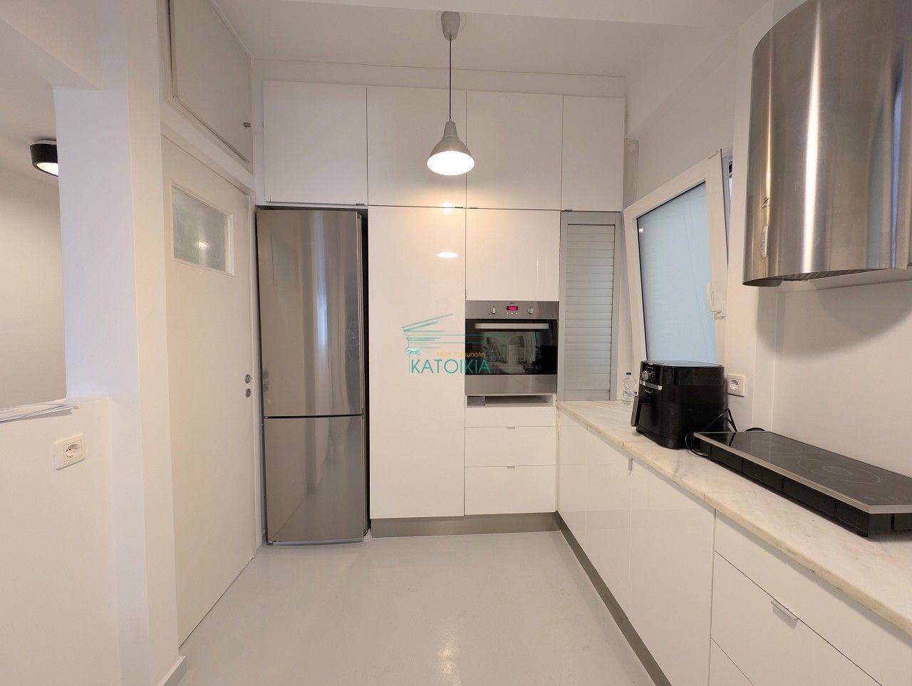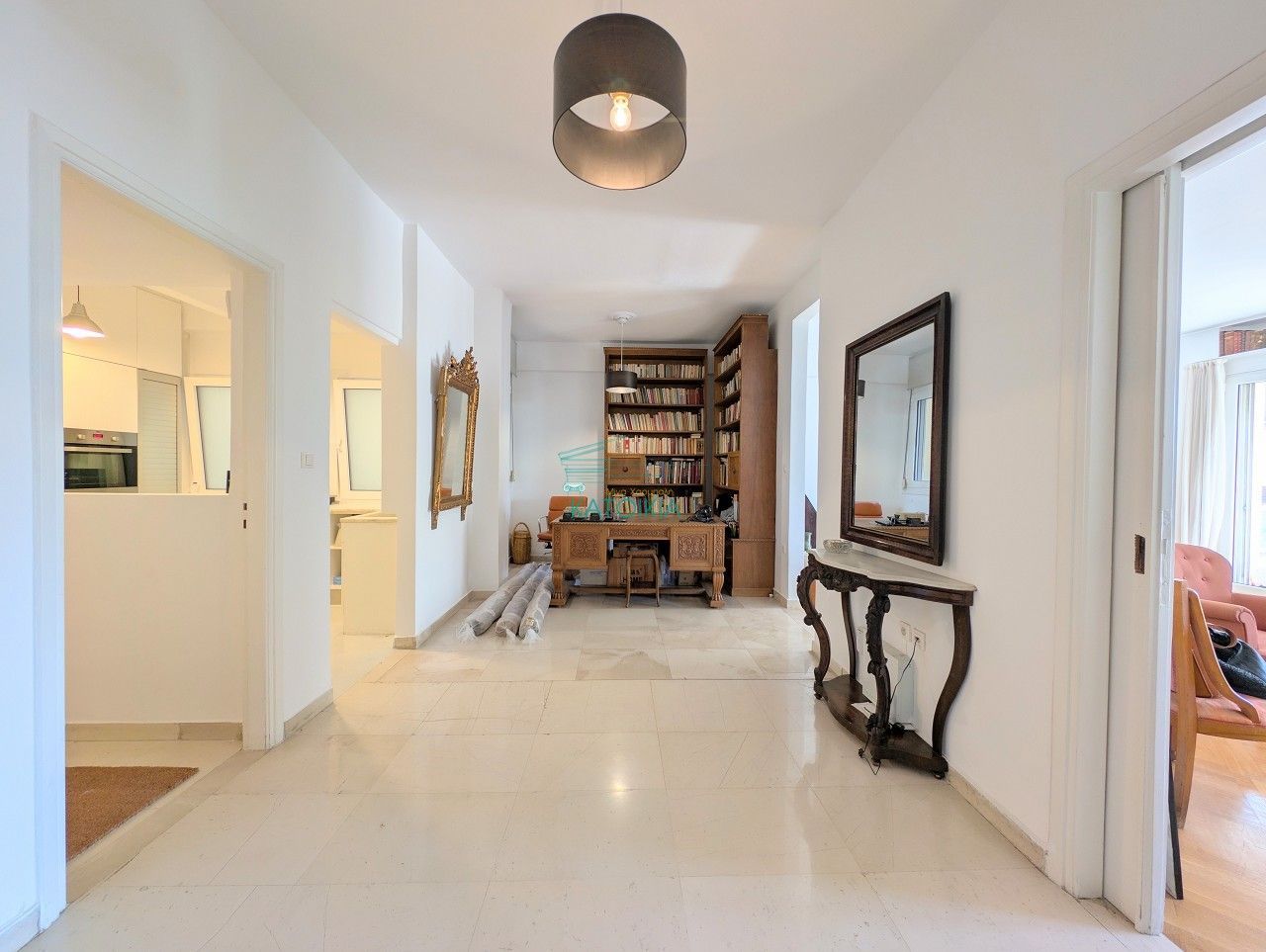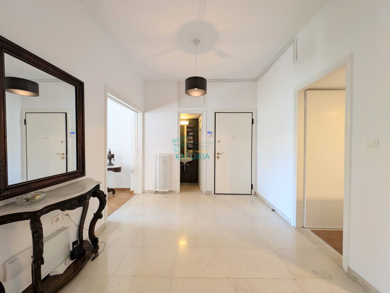 Полностью отремонтированная квартира площадью 116 м² на 3-м этаже в хорошо содержащемся жилом доме рядом с церковью Агиос Дионисиос. Квартира отличается исключительной светлостью и включает: красивую прихожую, просторную гостиную с выходом на широкий балкон с открытым горизонтом, полузамкнутую кухню со встроенной электротехникой, туалет, ванную комнату, 2 спальни. Оснащена алюминиевыми рамами, двойным остеклением, системой охраны, защитной дверью, дубовым паркетом. Предусмотрена возможность обустройства третьей спальни. Здание имеет красивый входной холл и отремонтированный лифт. Код доступа: 58133.