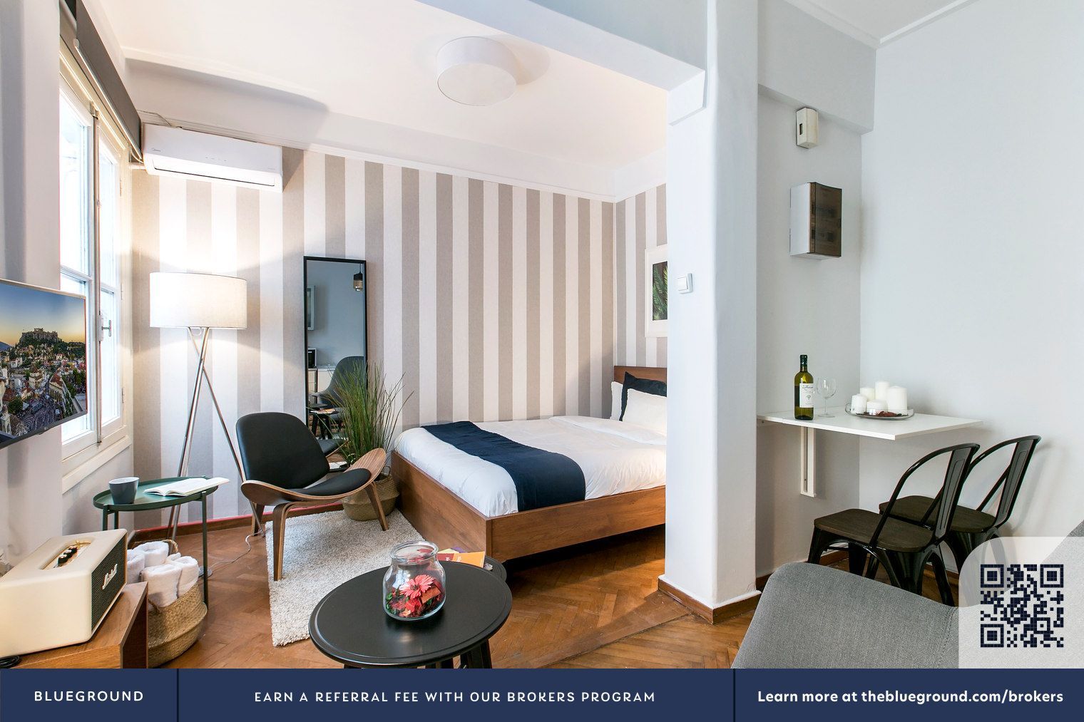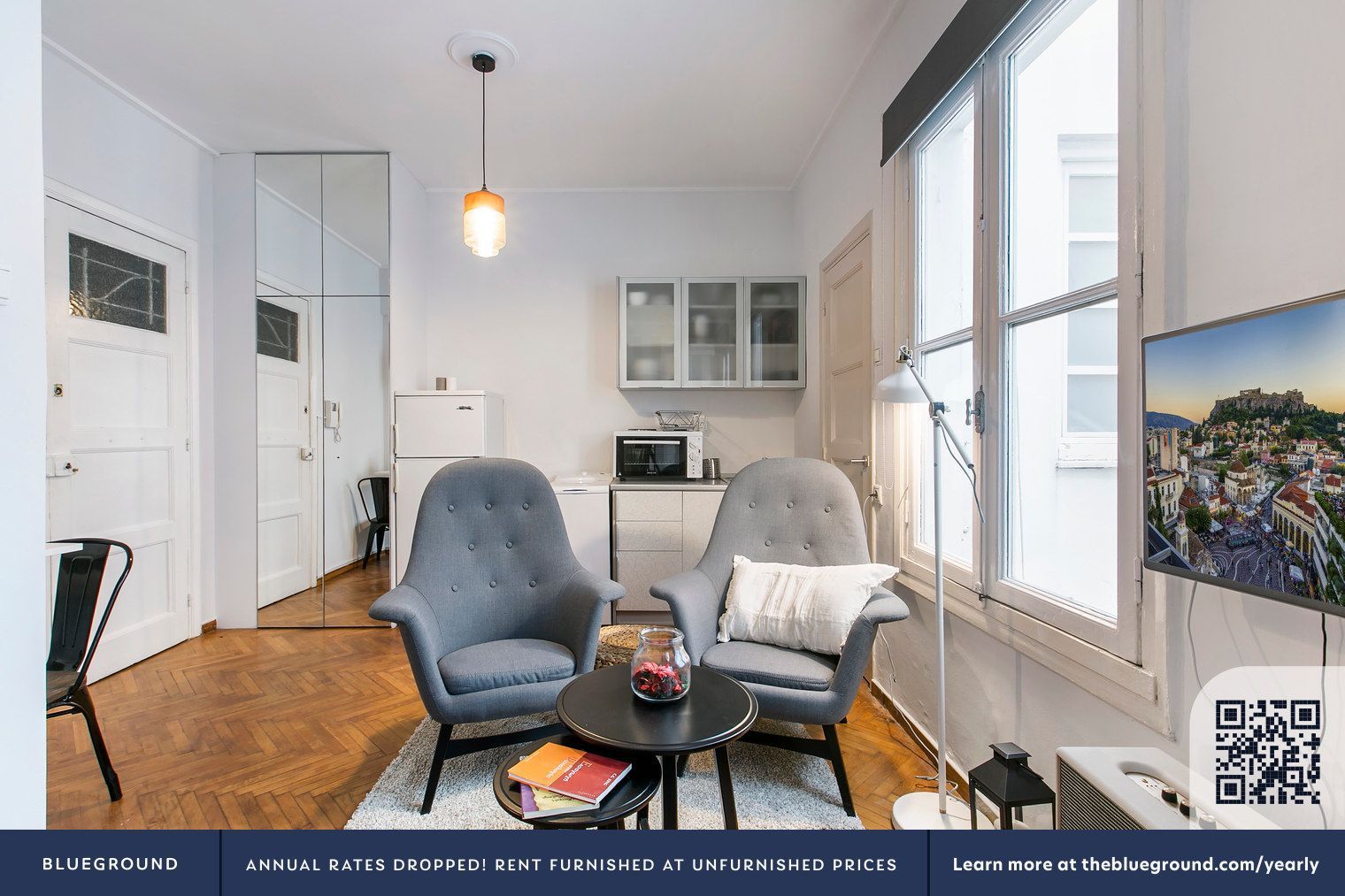 Элегантная однокомнатная квартира Blueground в Афинах, полностью меблирована и готова к заселению. Расположена в районе Panepistimiu. Цены варьируются в зависимости от длительности проживания и сезона. При годичном проживании с датой заселения 21 апреля 2026 г. стоимость составляет €580/месяц. Минимальная цена €460/месяц доступна при размещении на 3 месяца и 22 дня с той же датой заселения. Квартира полностью оснащена: красивая мебель, кухня со всем необходимым, умный телевизор, премиум беспроводная колонка. Спальная зона оборудована кроватью размером Queen (160см), матрасом высокого качества, комплектом постельного белья и полотенцами. Удобства здания: лифт, стиральная машина. В составе сервиса Blueground: круглосуточная поддержка через мобильное приложение, возможность заказать дополнительную уборку, подать заявки на техническое обслуживание, получить рекомендации по окрестностям. Все детали предоставляются после подтверждения бронирования. Основное преимущество: нет затрат на мебель и подготовку, квартира готова к заселению — достаточно приехать с чемоданом.