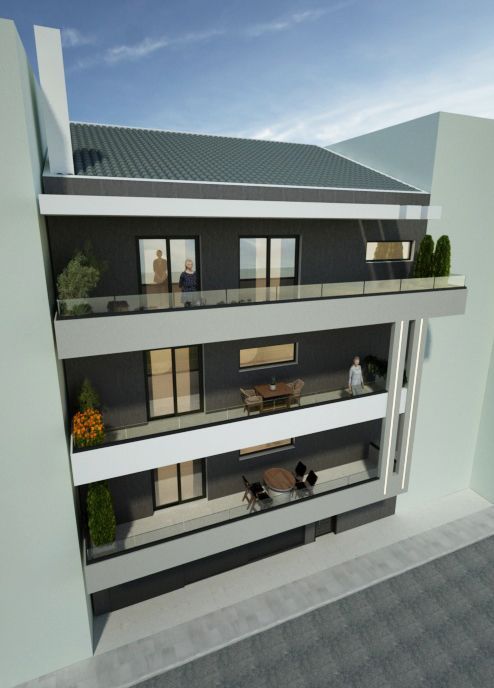 Перистери: В новостройке ультралюкс класса (2026) высотой четыре этажа предлагаются к продаже светлые двухсторонние квартиры площадью 72 м² на первом и втором этажах, а также мезонет площадью 115 м² на третьем и четвёртом этажах с открытым видом. Каждая квартира включает два парковочных места, кладовые помещения, тепловые насосы, солнечные водонагреватели, энергосберегающие алюминиевые рамы и внешнюю тепловую изоляцию. Полы гранитные, в квартирах предусмотрены камины. Интерьеры оформлены современными декоративными элементами с гипсокартонными деталями и скрытым светодиодным освещением. Кухни просторные и функциональные, спальни оборудованы встроенными шкафами-купе. В квартирах также имеются большие веранды. Здание будет состоять всего из трёх собственников, отличается современным и выразительным архитектурным стилем. Расположение — в престижном районе рядом с общественным транспортом, школами и торговыми центрами, обеспечивает идеальный баланс между спокойным проживанием и удобным доступом к центру города.