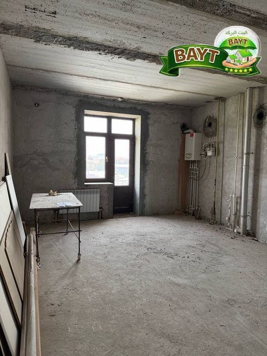 - Голые бетонные стены и потолок, цементная стяжка на полу — требуется полный ремонт с нуля