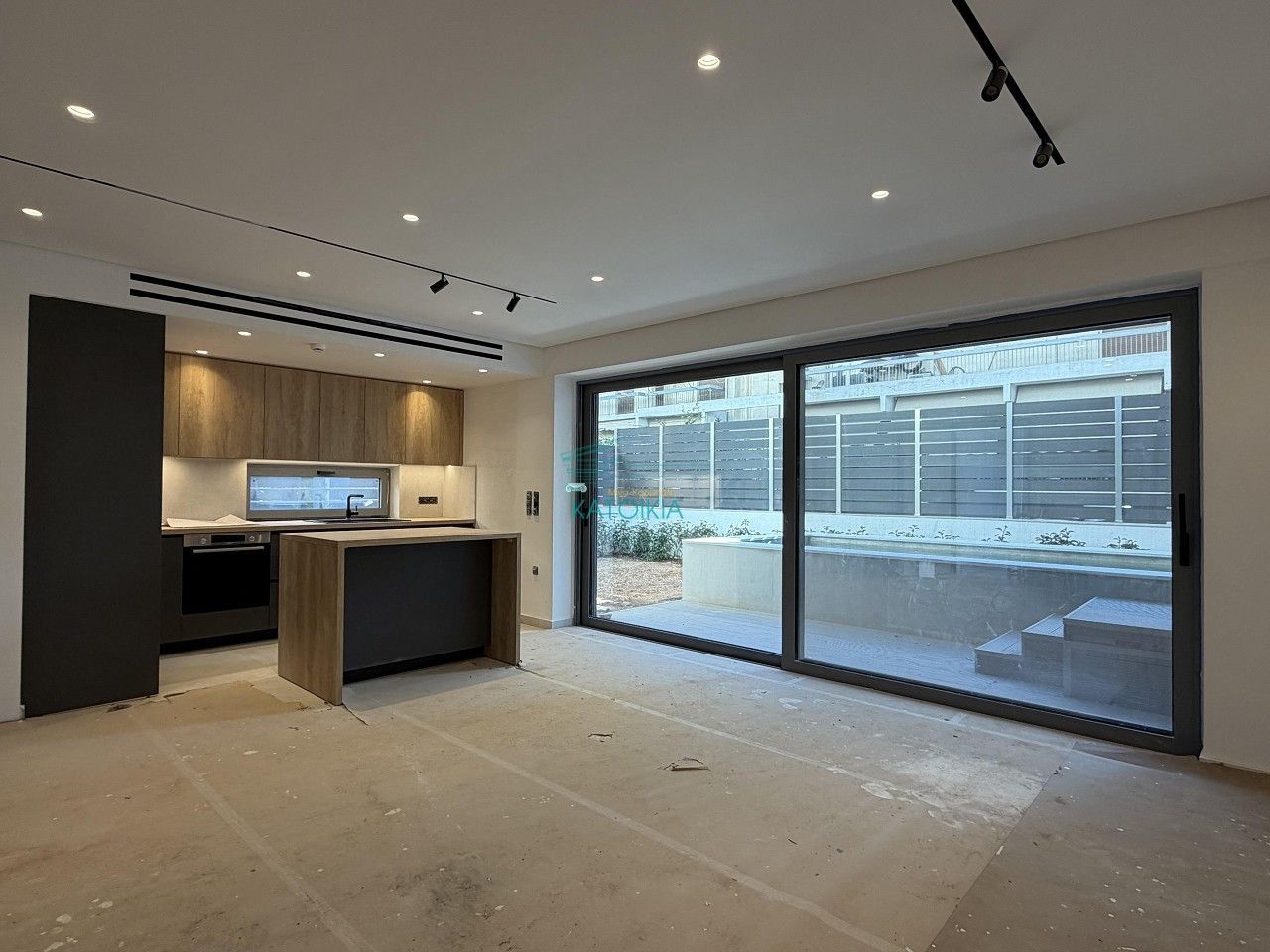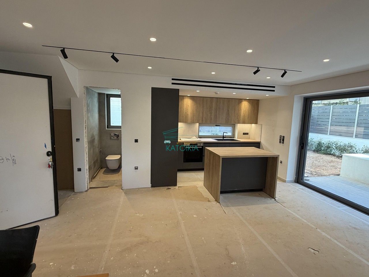 - Ремонт не завершён: видны строительный мусор на полу, отсутствует финишное покрытие пола, пыль