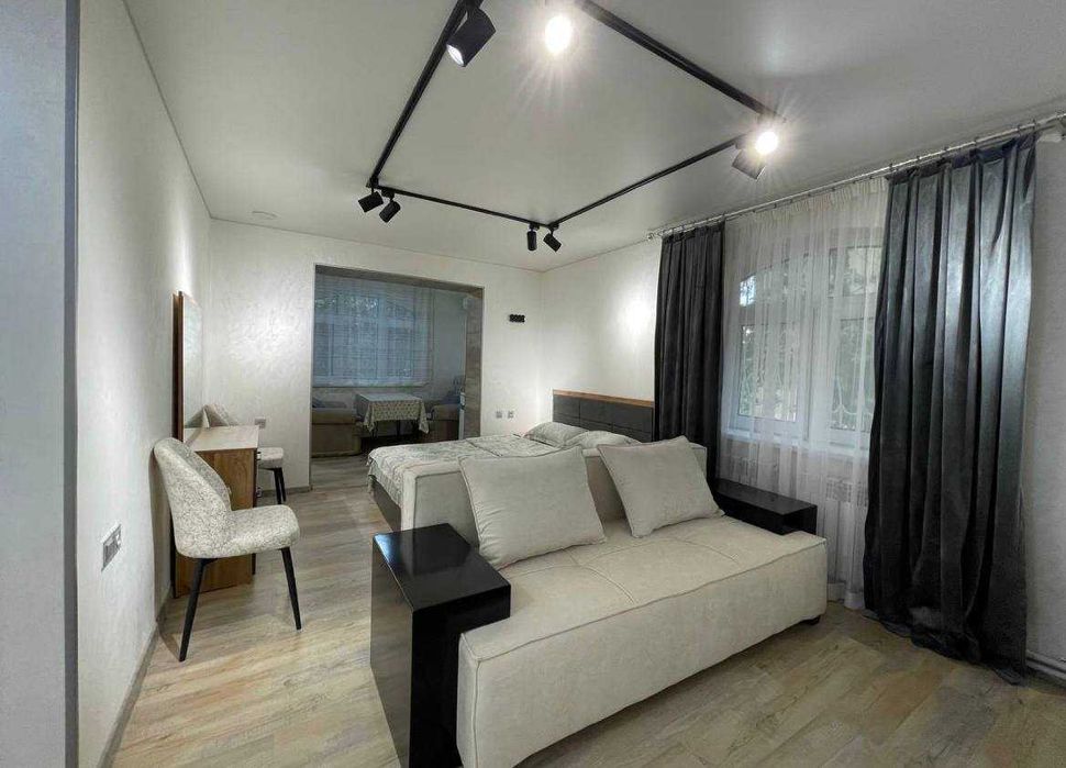 Минималистичная меблировка, диван выглядит поношенным
