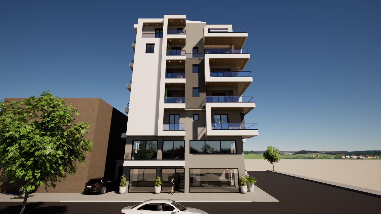 - Показан только экстерьер здания, интерьеры квартир отсутствуют