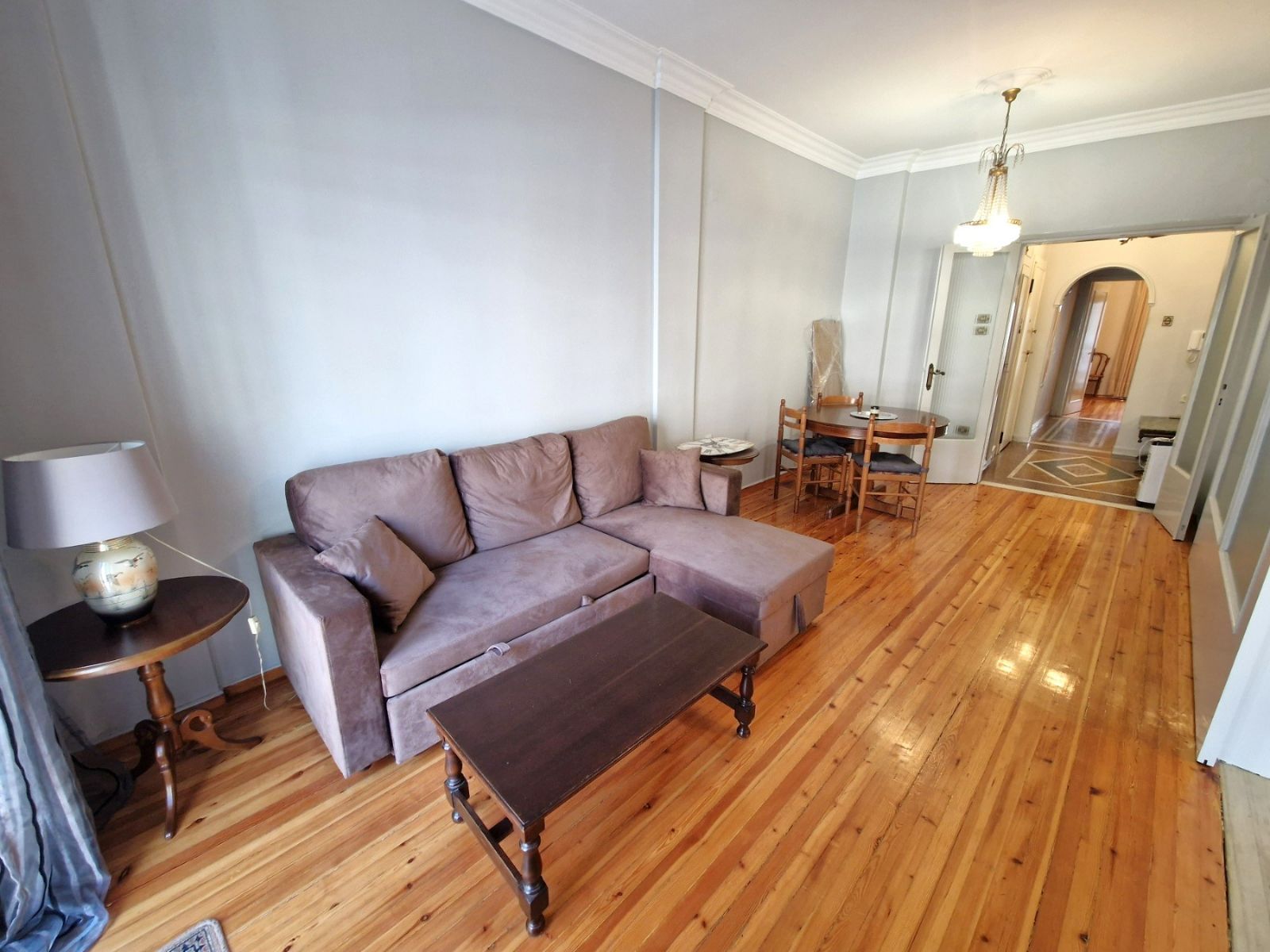 - Паркет имеет заметные потертости и царапины, особенно в гостиной