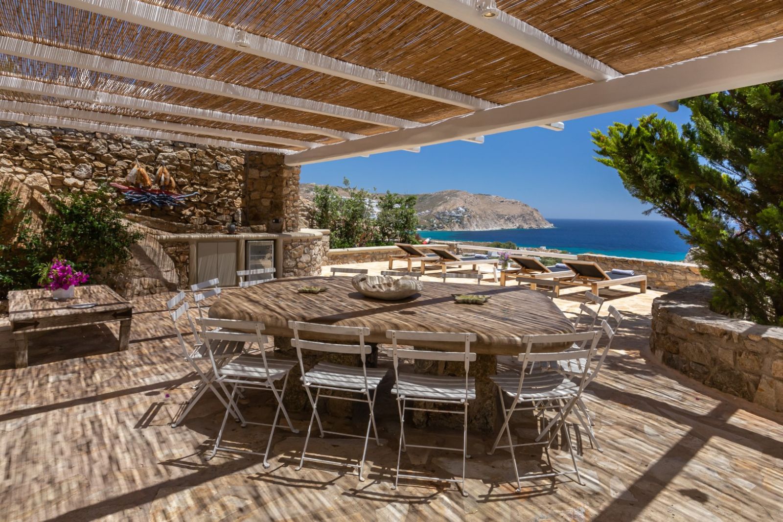 Цена указана за месяц в период с июня по сентябрь. Rocky Mansion - Миконос - Греция - 400 м² - 8 спален - 7 ванных комнат - участок 5,500 м² Потрясающая вилла на берегу моря с частным бассейном, полная конфиденциальность, вдали от всего. Rocky Mansion — элегантная и просторная семейная вилла, обращённая на юг, в привилегированном защищённом от ветра месте над великолепным золотым песчаным пляжем Аграри с величественным видом на Эгейское море. Несмотря на то что недвижимость находится всего в 10 минутах езды на машине от города, она предлагает спокойствие, приватность и потрясающие пейзажи. Пляж Аграри с его уютным очарованием и кристально чистой водой находится всего в 10 минутах ходьбы вниз по склону. Очаровательный интерьер виллы, выполненный в светло-голубых, белых и охристых тонах, можно описать как «стиль пляжного дома», сочетающий традиционные элементы кикладской архитектуры с провинциальными подобранными деталями. Открытые пространства Rocky Mansion, окружённые скалистыми холмами и средиземноморскими травами, воплощают истинный дух летней жизни, позволяя проживать каждый момент дня в полном комфорте и расслаблении. Множество двухуровневых зон отдыха и одна отдельная столовая/лаунж-зона под перголой в паре с высеченным из камня обеденным столом и традиционным барбекю на дровах предлагают гостям идеальное место для развлечений. Элегантный инфинити-бассейн, окружённый очень просторной солнечной террасой с удобной летней мебелью, доминирует на террасе виллы в сопровождении крытой перголы, обеспечивающей тень. Полностью оборудованная кухня с современной техникой выходит в приятную гостиную-зону отдыха с прямым доступом к бассейну и его широким террасам. Общая площадь виллы: 400 м² Общая площадь участка: 5,500 м² Парковка на 8 автомобилей и веранды площадью 300 м² Инфинити-бассейн в стиле лагуны площадью 40 м² с открытым джакузи на 8 человек (без горячей воды) Максимальная вместимость: 20 гостей - Количество спален: 8 • Главная спальня: двуспальная кровать, кондиционер, ванная комната (2 человека). • Спальня 1: двуспальная кровать, кондиционер, общая ванная (2 человека). • Спальня 2: две двухъярусные кровати, кондиционер, общая ванная (4 человека - идеально для детей). • Гостевая комната 1: двуспальная кровать, кондиционер, ванная комната, отдельный вход (2 человека). • Гостевая комната 2: двуспальная и односпальная кровать, кондиционер, ванная комната, отдельный вход (3 человека). • Гостевая комната 3: две односпальные кровати, кондиционер, ванная комната, отдельный вход (2 человека). • Гостевая комната 4: двуспальная кровать, кондиционер, ванная комната, отдельный вход (2 человека). • Гостевая комната 5: двуспальная и односпальная кровать, кондиционер, ванная комната, отдельный вход (3 человека). Все двуспальные кровати: 1.60 × 2.00 метра Все односпальные кровати: 0.90 × 2.00 метра Удобства: • LCD TV, Netflix, Wi-Fi интернет • Обеденная зона на открытом воздухе и барбекю на дровах • Кондиционер и отопление во всех комнатах • Кухня с современной техникой, полностью оборудована • Wi-Fi Starlink 200 Мбит/с по всему дому Включённые услуги: • Личный консьерж 7 дней в неделю • Встреча в аэропорту и приветствие по прибытии. Помощь с багажом и сопровождение на виллу. • Объяснение деталей виллы гостям. Передача ключей. • Знакомство с персоналом и организация времени уборки и обслуживания в удобно