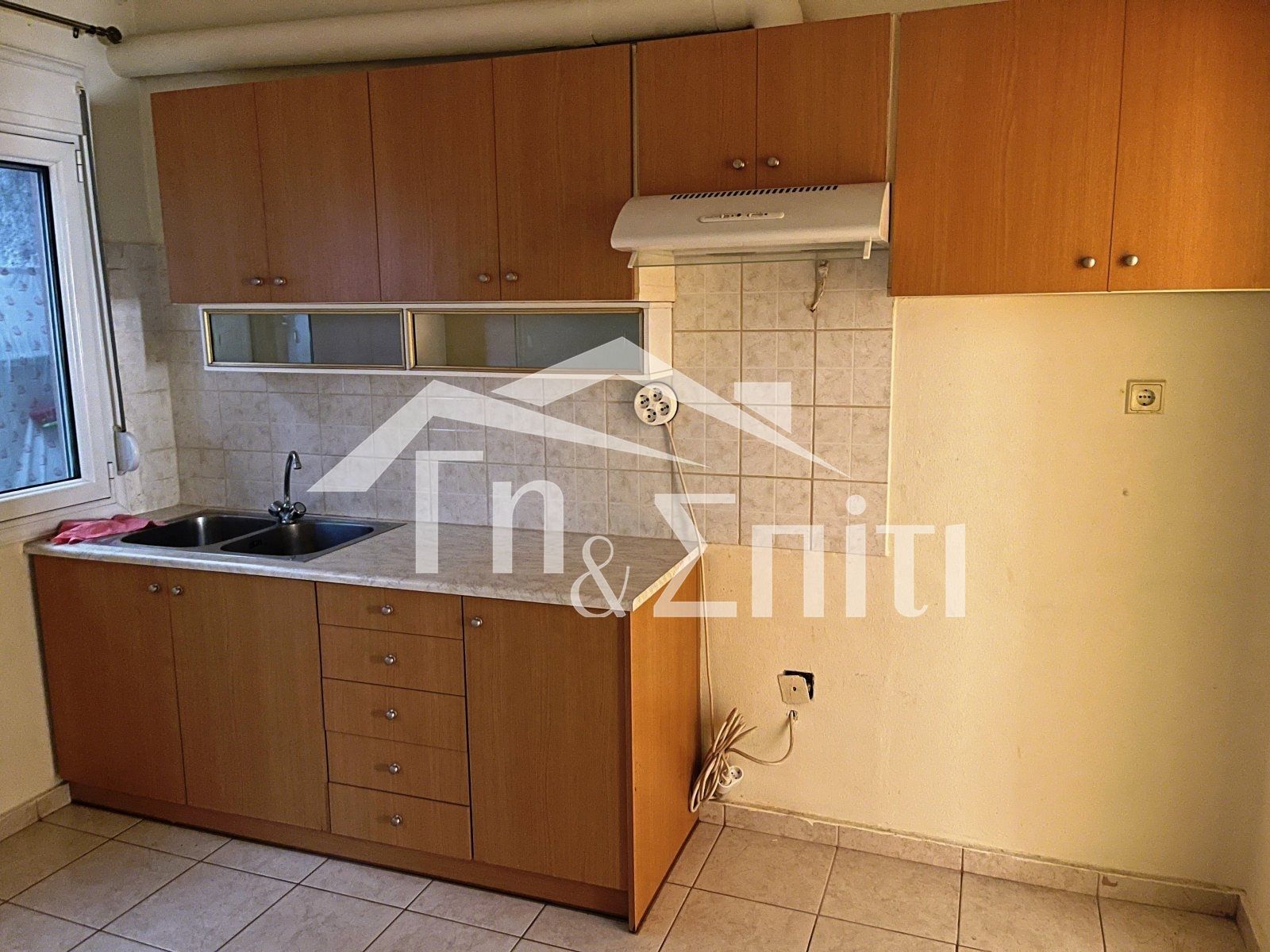 - Устаревшая плитка и фартук, базовая мебель из ДСП