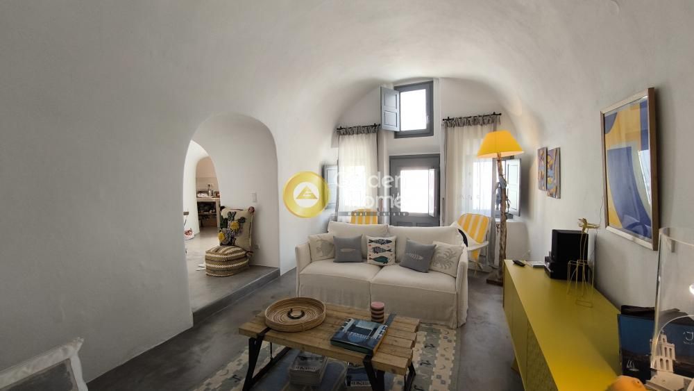 Дом в Контохори, Фира, Санторини площадью 120 м², состоящий из жилого помещения на первом этаже (90 м²) и подвального апартамента (25 м²). 2 спальни, 3 ванные комнаты и 1 туалет. Угловой дом с фасадом, расположенный в традиционном поселении, с пешеходным доступом. Отличное состояние, полностью обставлен и оснащен. Особенности: гидромассажная ванна под навесом, камин, большая терраса с видом на море, деревянная отделка, керамическая плитка полов, солнечное водяное отопление. Автономное отопление с фанкойлом, кондиционер, светлое помещение. Участок 270 м², 2 уровня. Год постройки: 1960, год ремонта: 2015. Энергокласс А, ориентация В. Подходит как для загородного дома, так и для туристического использования.