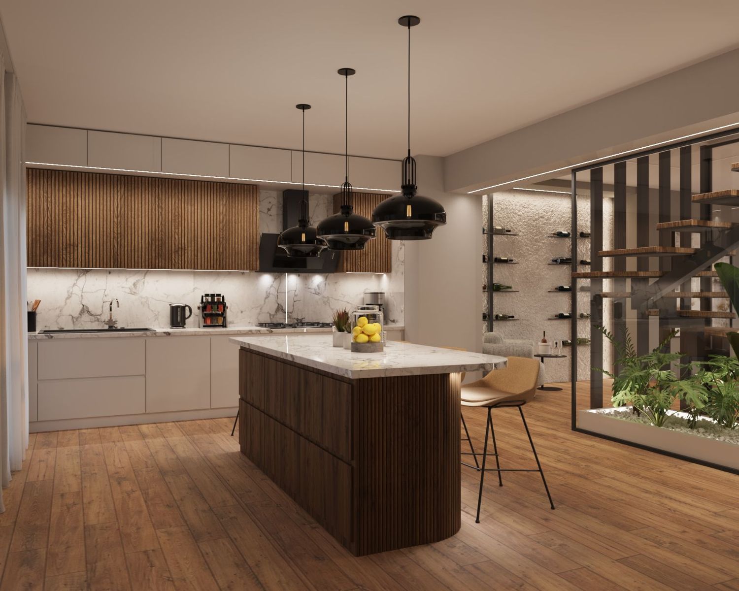 Исключительный новый таунхаус минималистичного дизайна общей площадью 200.19 м², сочетающий современную архитектуру с комфортом, технологией и высокой эстетикой. Расположен на четырех уровнях, связанных внутренней лестницей и частным лифтом. Включает гибкую зону для игр с прямым доступом в сад и бассейн, светлую открытую гостиную-столовую с кухней Gruppo Cucine, две спальни с балконами, главный люкс на чердаке с собственной ванной комнатой, кладовую, прачечную и складские помещения. В собственности находятся частный сад с бассейном, подземное закрытое парковочное место с водоснабжением и предварительной установкой зарядного устройства для электромобилей. Оборудован подогревом пола с тепловым насосом Galletti, солнечным водонагревателем Sonne Aktion, 8 см термоизоляцией, алюминиевыми рамами Alumil, системой умного дома KNX, энергетическим камином, светодиодным освещением и полной системой безопасности. Расположен в тихом, благоустроенном для семей районе рядом со школами, магазинами и общественным транспортом — идеальный выбор для тех, кто ищет роскошь, комфорт и энергоэффективность в современном высокотехнологичном доме.