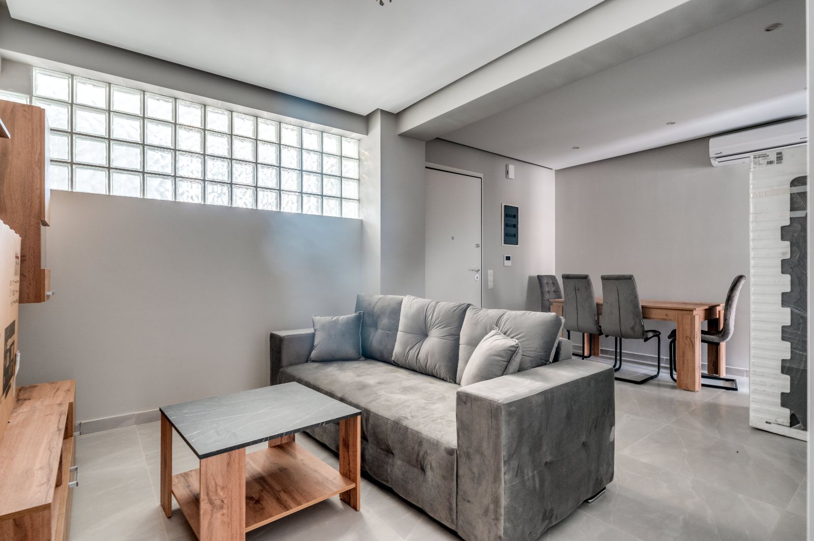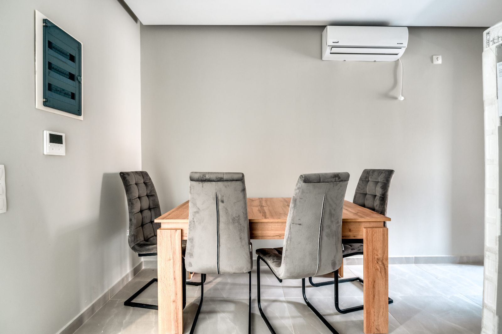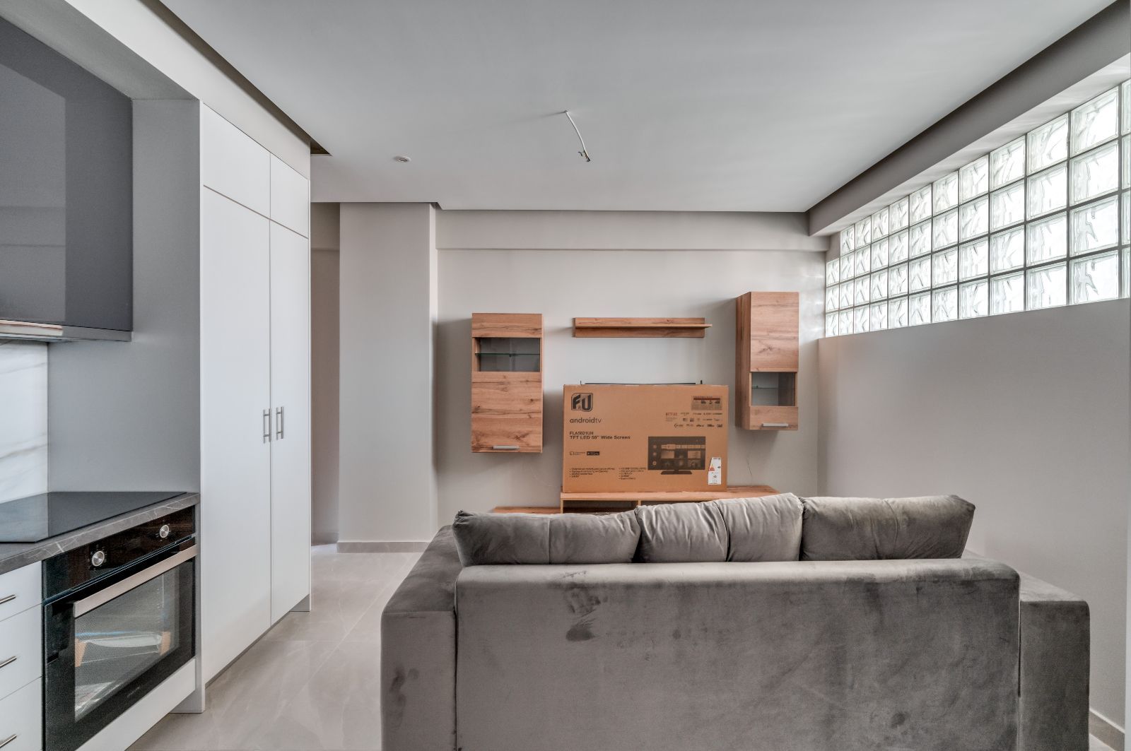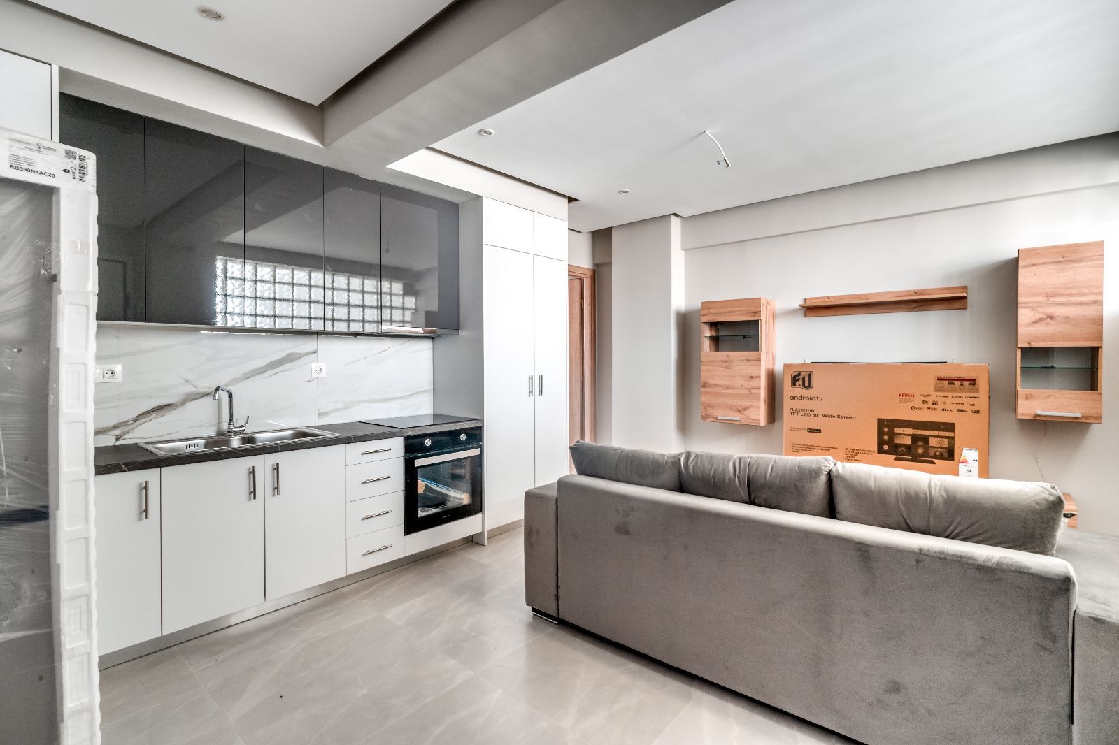 - На полу видны защитные плёнки/пакеты, возможно незавершённый этап