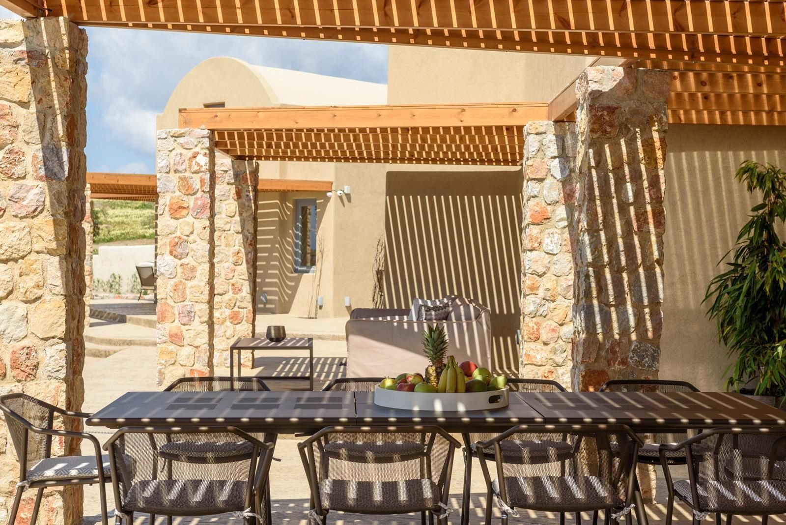Продается исключительная люксовая вилла с подвалом и бассейном, расположенная на участке 7,138.89 кв.м, а также прилегающем участке 4,010.15 кв.м в престижном спокойном месте на Санторини. Основной дом (Здание А): Подвал: 71.50 кв.м (винотека, техническая комната, кладовые, прачечная) Подземный этаж: 225.47 кв.м Чердак: примерно 40 кв.м Планировка: гостиная, кухня, столовая, 4 спальни, гардероб, 3 ванные комнаты Гостевой дом (Здание B): Подземный этаж: 35.04 кв.м Чердак: примерно 15 кв.м Спальня, кухня, ванная комната Конструкция и особенности: Люксовое строительство в отличном состоянии, мраморные и гранитные полы, тепловые насосы, солнечные водонагреватели, опреснительная система, винотека с приватной коллекцией вин. Бассейн: примерно 125 кв.м с баром, джакузи и шезлонгами. Открытые площади: полностью обнесены каменными стенами, террасированный ландшафт с мощеными дорожками, беседками, открытыми зонами отдыха и столовыми, частный теннисный корт, вертолетная площадка (отмечена «H»), приватный виноградник. Виды: безпрепятственные 360° панорамные виды на море. Прилегающий участок: 4,010.15 кв.м, используется как виноградник, имеет доступ на муниципальную дорогу, потенциал для развития. Местоположение: 11 км от Фиры, 12.5 км от аэропорта Санторини, 25 км от Ои. Идеальна для люксовой приватной резиденции, высокомарочного туристического развития, премиум-инвестиций в недвижимость Санторини. Цена: €3,500,000