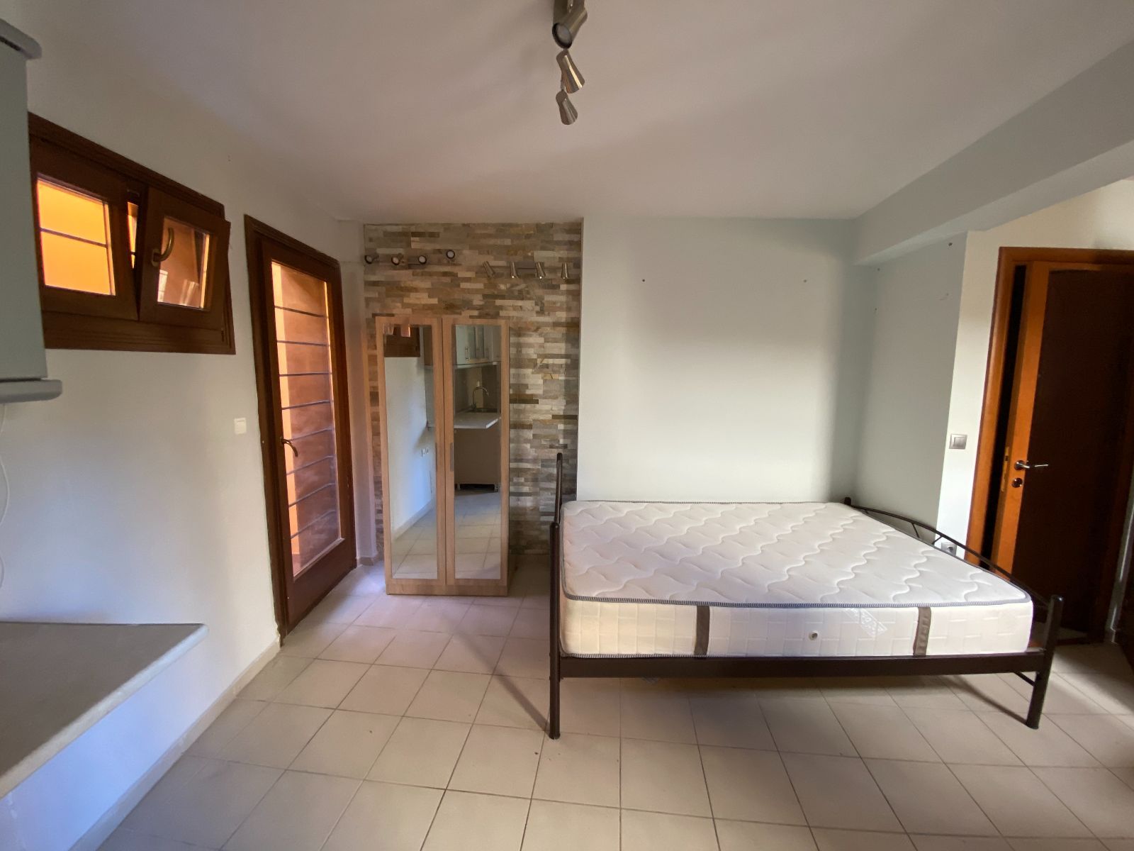- Студия полностью пустая, нет мебели кроме каркаса кровати без матраса