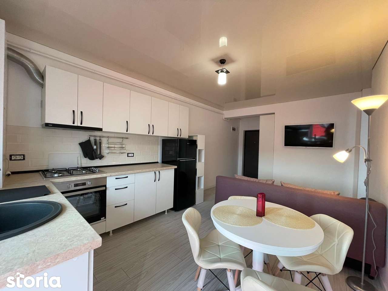 - Очень компактная студия, маленькая кухонная зона
