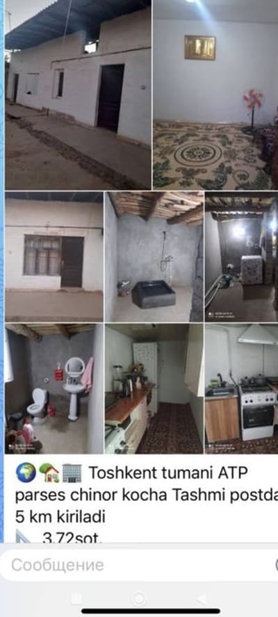 Lokatsa Toshmiy postda 6km ichkariga kirganda atp Parsez da joylashgan 3.7 sotuk 2 ta xonasi bor yashidigan