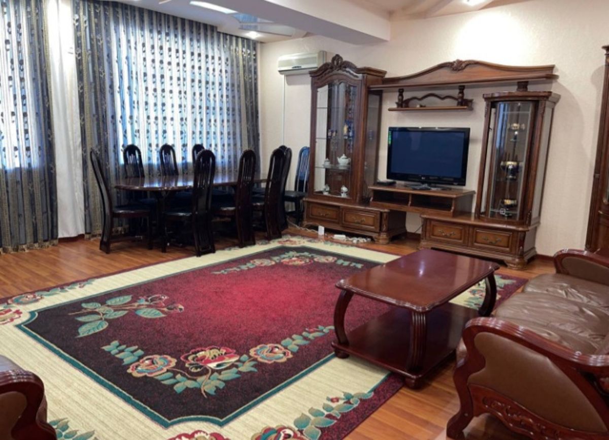 3 комнатная квартира находится на улица Садик Азимов Ц 1. На 2 этаже. Имеет хорошую локацию и удобное место расположение. В хорошем состоянии, евро- ремонт, имеется мебель, техника и wi-fi.