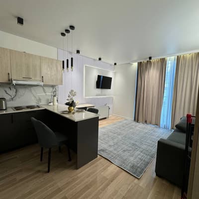Продается 1-комнатная квартира в новостройке,1/4/14-58 000 у.е, на ул.Махтумкули, ЖК Besh Chinor. Ориентир: IT парк. Монолитный дом, 28 м². Ремонт, мебель,техника.