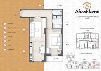 Новостройка 2 комнатная Шошкент Яккасарай