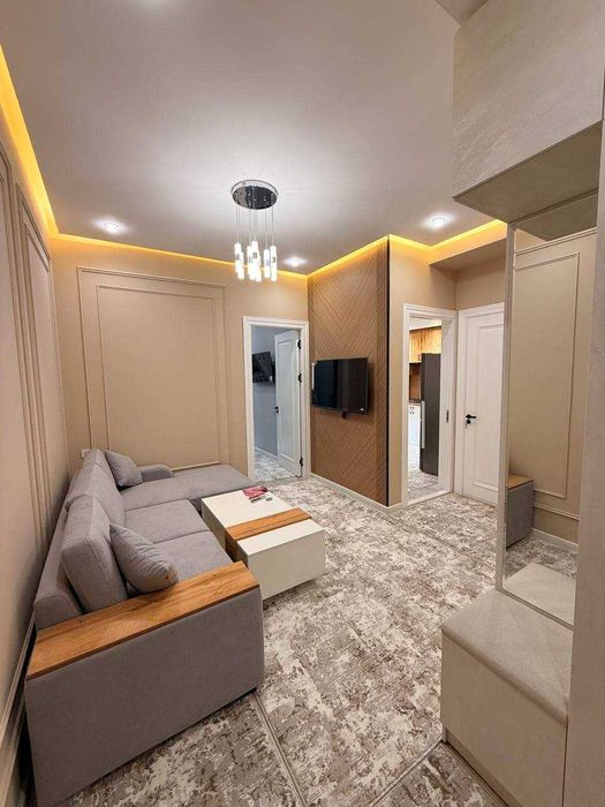 Продажа новостройка Район - Яккасарайский Ориентир - Кушбеги, Братская Могила, Комнаты - 2 Этаж - 9 Этажность - 16 Квадрат - 43м² Состояние - евролюкс С мебелью и техникой Цена : 85.000 $ (договорная на месте) В квартире есть 2 телевизора по 43 дюйма, стиральная машина Zifler, диван, стол, стулья — в общем, есть всё необходимое. Квартира полностью укомплектована, можно заехать и жить, ничего докупать не нужно.