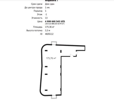 Русский Продается нежилое помещение в ЖК Infinity, Golden House, Яшнабад, Ташкент Кадастр: есть Площадь: 201 м² Этаж: цокольный Дополнительно: есть арендатор, доход 18 $/м² Ориентир: ул. С. Азимова, Ц-1, 145-я школа Цена: 649 999 $ — срочно Контакт: +998 77 003 29 22 O‘zbekcha Yashnobod, Toshkentdagi tijorat binosi sotiladi Joy: ЖК Infinity, Golden House Kadastr: bor Maydon: 201 m² Qavat: podval Qo‘shimcha: ijarachisi bor, daromad 18 $/m² Joylashuv: S. Azimov ko‘chasi, C-1, 145-maktab yaqinida Narxi: 649 999 $ — shoshilinch Aloqa: +998 77 003 29 22