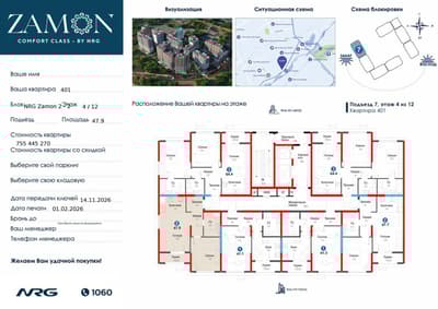 Продается евро двушка на третьем этаже в ЖК NRG Zamon комфорт класса. Сдача в ноябре 2026 года, сдадут в срок, самый надежный застройщик в Узбекистане. Готовые квартиры с кадастром в этом комплексе от 1400$ за м2. Стоимость в этом году вырастет минимум на 10.000$ Квартира в предчистовой отделке, закрытый двор, рядом с станцией метро. Фактическая площадь 49,6м2. Самая лучшая планировка в комплексе. Перспективная локация, удобная развязка. Стоимость застройщика на данный момент с учетом скидки 642 128 480 сум. Продаю сам, без маклеров и посредников. Инвестиционный договор на мое имя и послностью оплачен. Перерегистрируем в компании застройщика на Ваше имя.