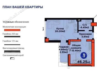 Продается Квартира, коробка, 44м2, ТРЦ Seoul Mun, ЖК«Кислород» (87648)