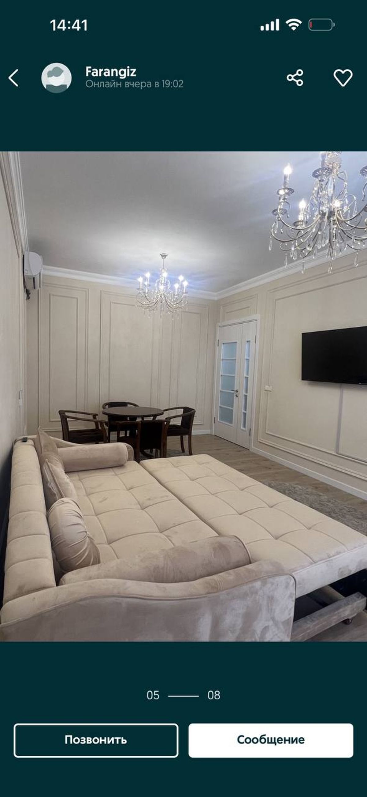 ID: 10652 Район: Алмазарский Адрес: Olmazor city • Комнат- 1в2 • Этаж- 7 из 18 • Площадь- 60 • Кондиционер -есть • Телевизор-есть • Стиральная машина- есть Звоните, имеются альтернативные варианты, так как в базе более 5.000 объектов по городу! С уважением "Мега Риэлтор" эксперт рынка недвижимости