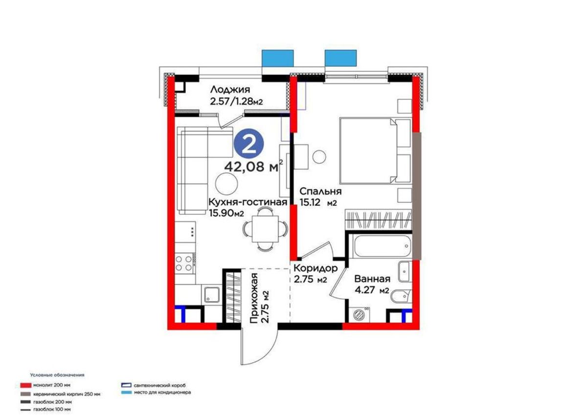 2/4/9 42м2 Жк Bi Sado , Comfort 2й-корпус , КАДАСТР