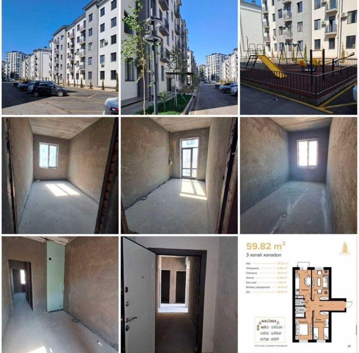 ЖК Dustlik 60м2 3 комнатная коробка ориентир ул.Баку ,Узбум, Яшнабад