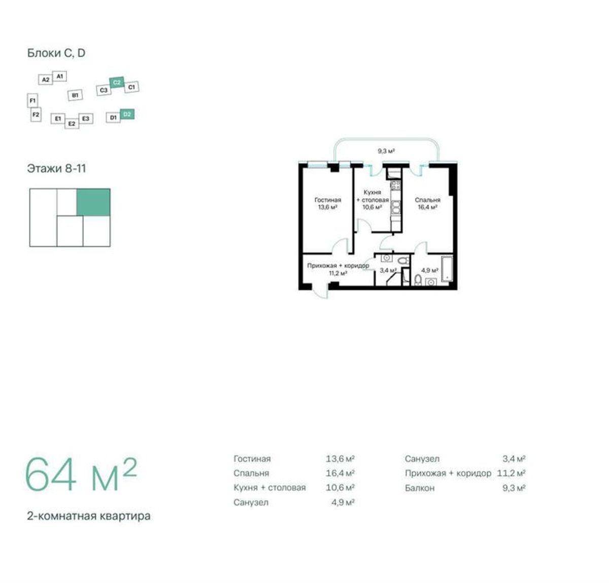 64 м²