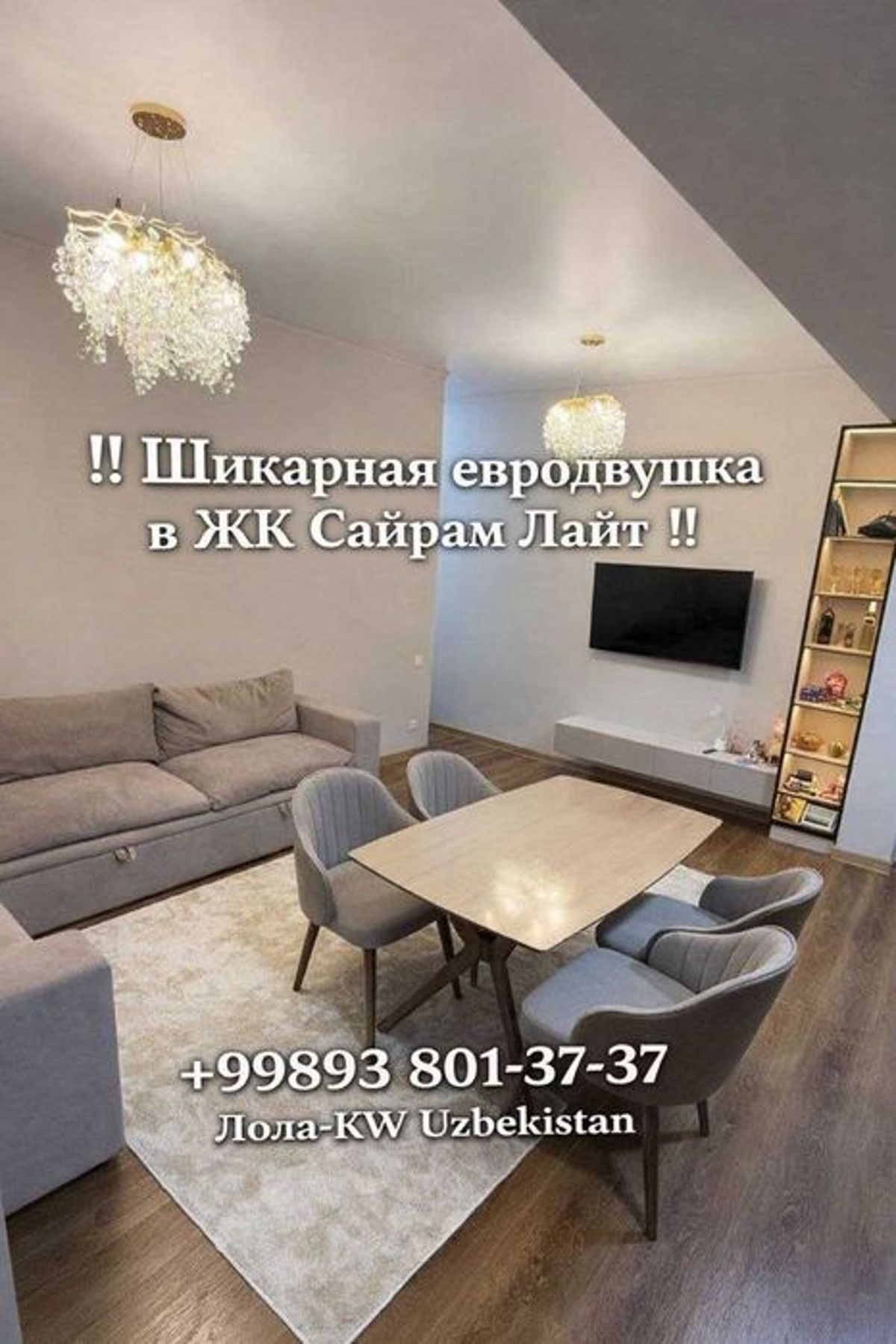 ‼️Продается квартира‼️ ЖК Сайрам Лайт -Район: Мирзо-Улугбекский -Комнат: 2 (евродвушка) -Этаж: 10 -Этажность: 11 -Площадь: 49м2 Квартира в хорошем состоянии, мебель и техника имеются. Цена: 87 500 у.е +99893 801-37-37 Лола-KW