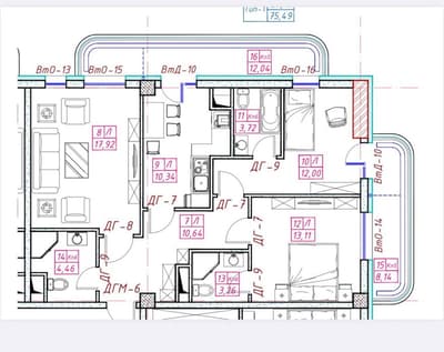 83 м2 + балкон , ЖК Parkwood , 3 комнаты
