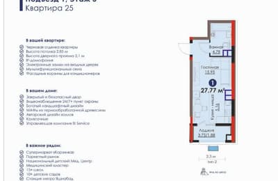 Класс: Комфорт/Бизнес Район: Яшнабадский Ориентир: Мост Топович Инфраструктура Закрытый двор без машин Авторский ландшафтный дизайн Детская площадка крытая беседка Патио/костровая зона Садовая оборудованная кухня с мебелью Крытая оборудованная Workout зона Зона амфитеатра с проектором Сухой фонтан Питьевые фонтаны Зеленая зона - газоны для пикников Зеленая Арка вдоль аллеи со скамьями Парковка для велосипедов В стоимость квартиры включено: Пол - произведена стяжка покрытия, с тепло- и шумоизоляционным слоем. Отделка стен - стены выровнены для чистовой отделки. Отопление - трубы расположены в полу, установлены радиаторы. Потолок – без отделки. Входные двери и окна - металлическая входная дверь с электронным замком и окна с долговечной фурнитурой Установлены подоконники и оконные откосы. Электрика – вводной кабель до квартиры, без внутренней разводки.