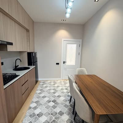 ЖК Менинг Уйим, кирпич Юнусабад 13 квартал Улица Районо #2х_комнатная (студия) 6-й этаж 8 этажный дом Общая площадь 45 м2+балкон Состояние: новый евроремонт, полностью с мебелью и техникой, ключи сразу в нотариусе