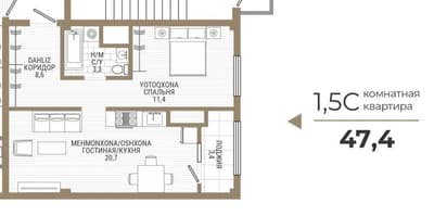 ЖК Кох-Ота 2-х комнатная квартира. 47.4м2.