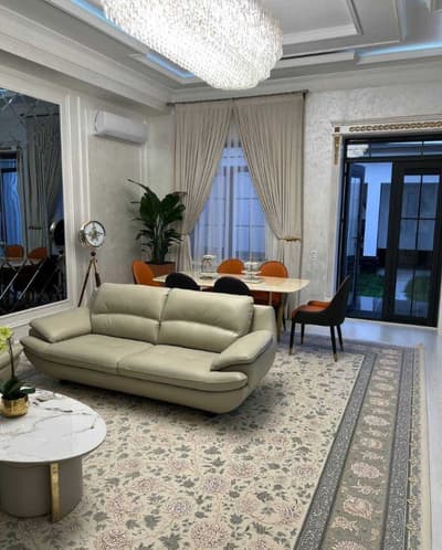 Район Мирзо Улугбекский Территория: 3 сотки Комнат: 5 Площадь дома: 300 м2 Количество санузлов: 4 Бассейн, сауна Состояние: совершенно новый Описание: Дом построен в 4 уровня, имеется подвал и мансарда Летняя кухня на заднем дворе, зеленая зона, на переднем дворе въезд для автомобиля